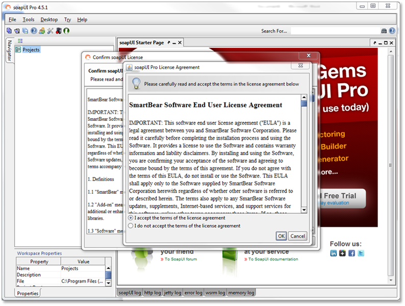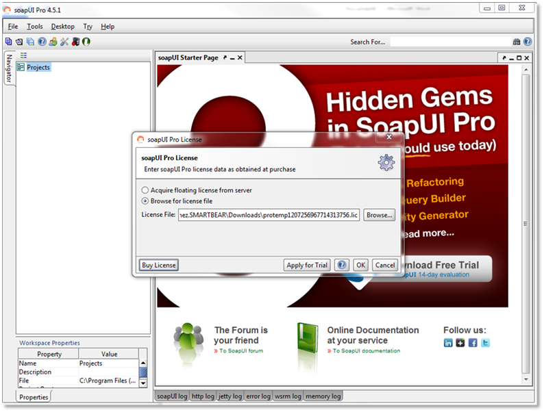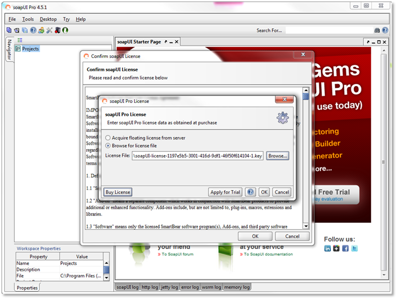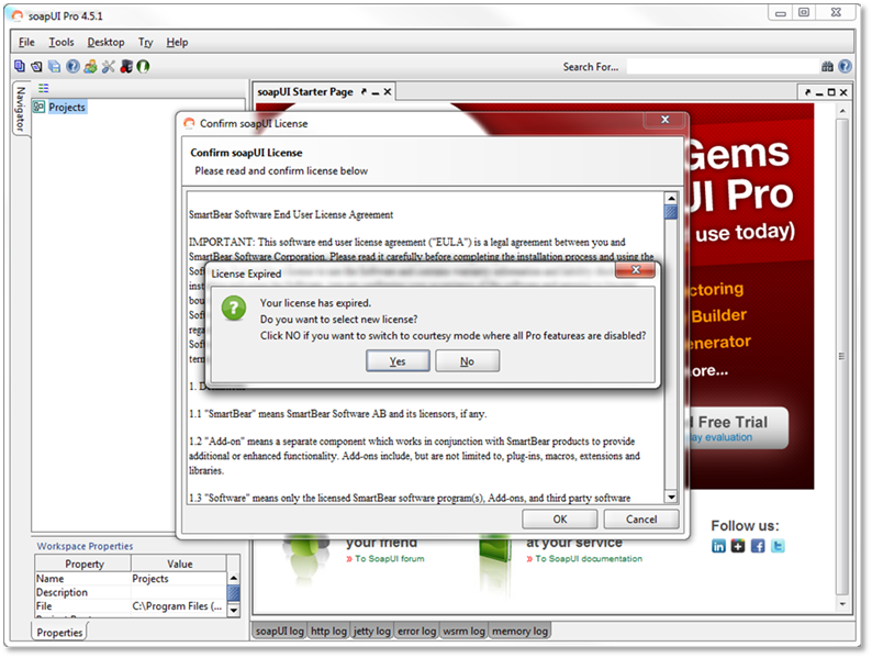 If you do not have an expired license installed you will need to follow the steps below. When you open ReadyAPI without an active or expired license, you should see the following prompt: