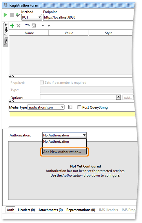 From the Authorization box, select Add New Authorization: