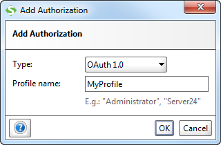 In the subsequent dialog, select the OAuth 1.0 authorization type and enter the profile name. Click OK: