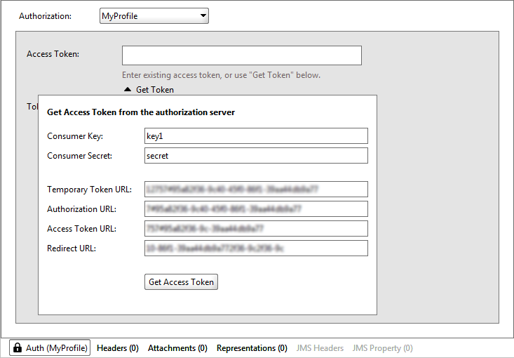 OAuth1 uses Access Token and Token Secret to get access to the protected resource. If you already have these, enter the required values to corresponding fields. If you do not have these values, then follow these steps: