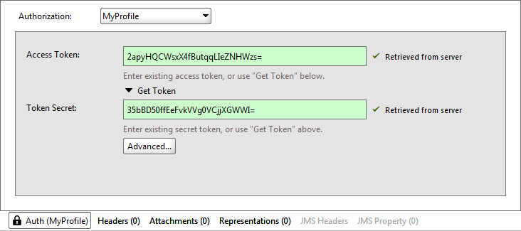 SoapUI will retrieve the Access Token and Token Secret values and put them to the respective fields: