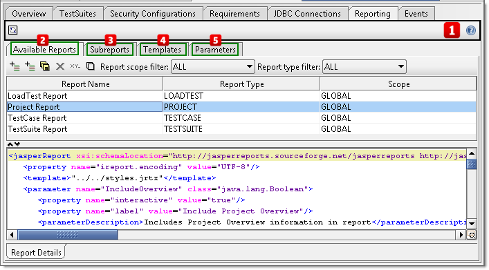 Available Reports Toolbar