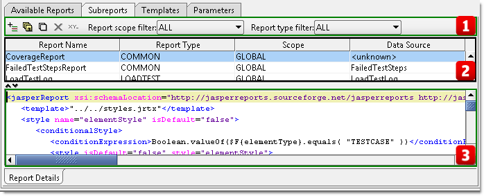 Subreports Toolbar