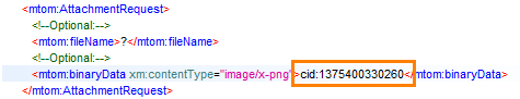 To specify the place for the attachment contents in message payload, use the cid:*nnnn* syntax: